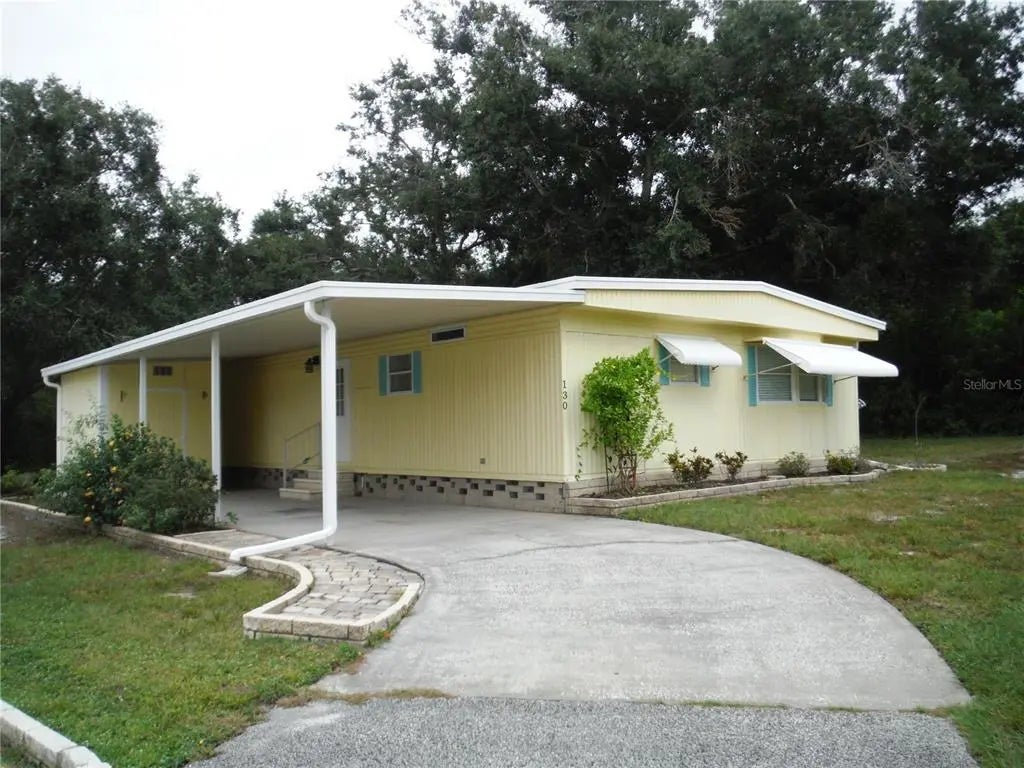 Wow! Feels like being in the country. Huge back porch gives you immense privacy on this corner lot. You are surrounded by woods when you look out the windows on this wonderful porch. This 2 bedroom 2 bath home is on a deeded lot 55X96 feet. You own this lot included in the price. A cat is welcome, but, sorry, no dogs. This property is available as soon as you make the decision and get approved by the community. Pay only $223.00 per month for maintenance fees which include water, sewer, trash, private roads, clubhouse, heated pool & spa, shuffleboard, and a laundry room in case your appliances break. What a fabulous 55+ retirement community! Room measurements approximate.